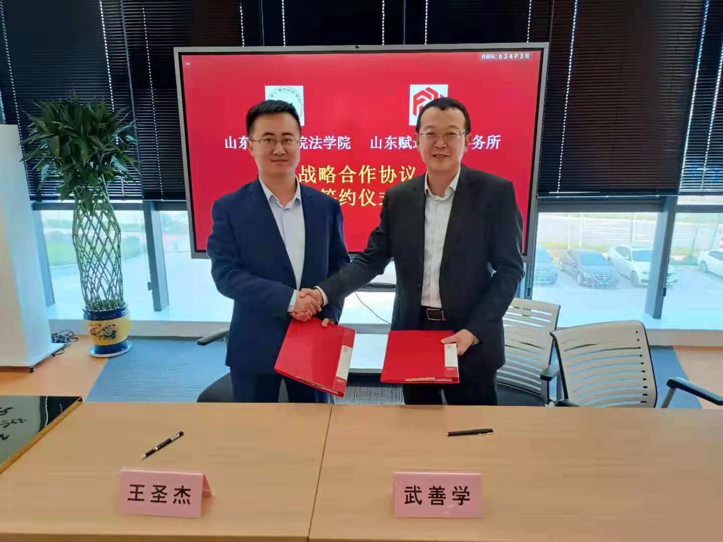 双方通过对合作的具体事项进行深入细致讨论后,现场签署了战略合作协议。根据协议,双方将在人才培养、专家授课、疑难案件研讨、课题研究、业务培训等领域开展深度合作,并建立联席会议机制确保协议的有效落实。根据协议,山东赋远律师事务所在我校太阳成城集团tyc234cc设立“赋远”奖学金。