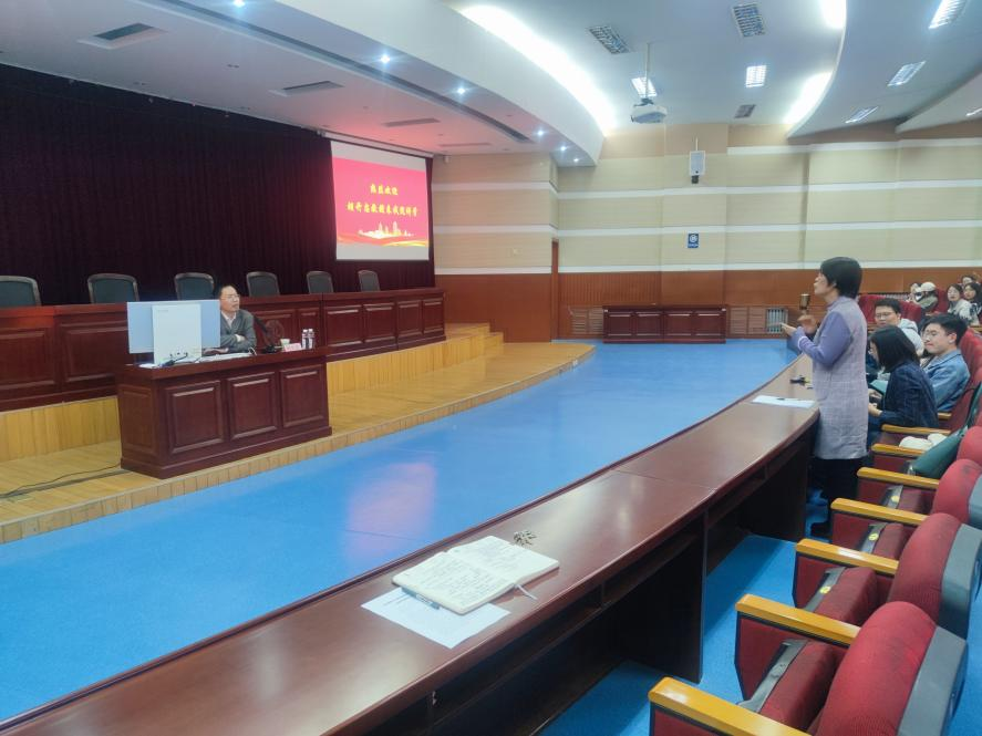 在交流互动环节中,同学们积极踊跃发言,胡开忠教授逐一进行解答,现场学习氛围活跃。武善学副院长对胡开忠教授表示感谢,并鼓励同学们要将知识产权理论知识融入于课堂和贯通到实际案例中。
