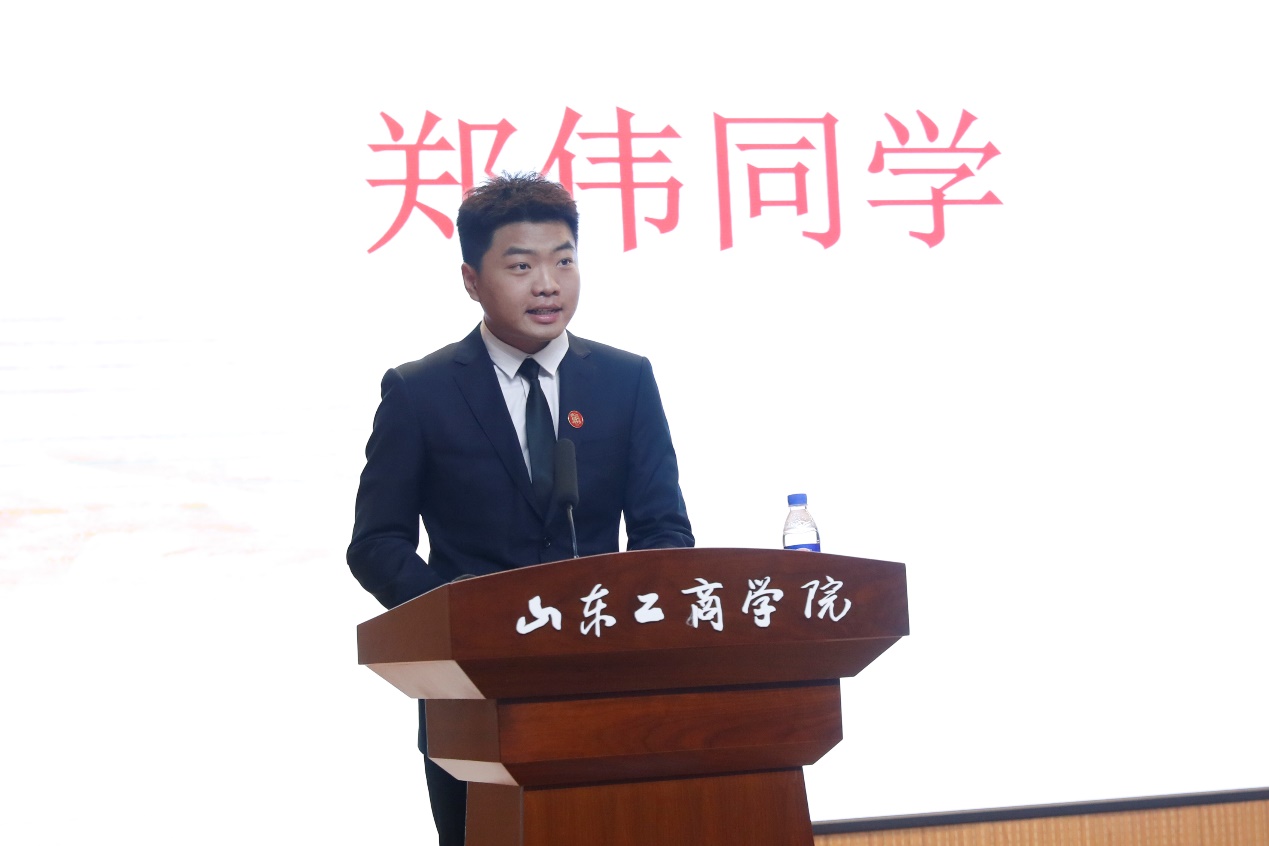 合作单位代表山东中立达律师事务所主任刘秀峰、校友代表烟台经济技术开发区人民法院办公室主任刘旭、教师代表董书萍、学生代表郑伟先后发言,结合个人工作或学习经历表达了对太阳成城集团tyc234cc感恩之情,并寄语在校生努力学习,锤炼成才。