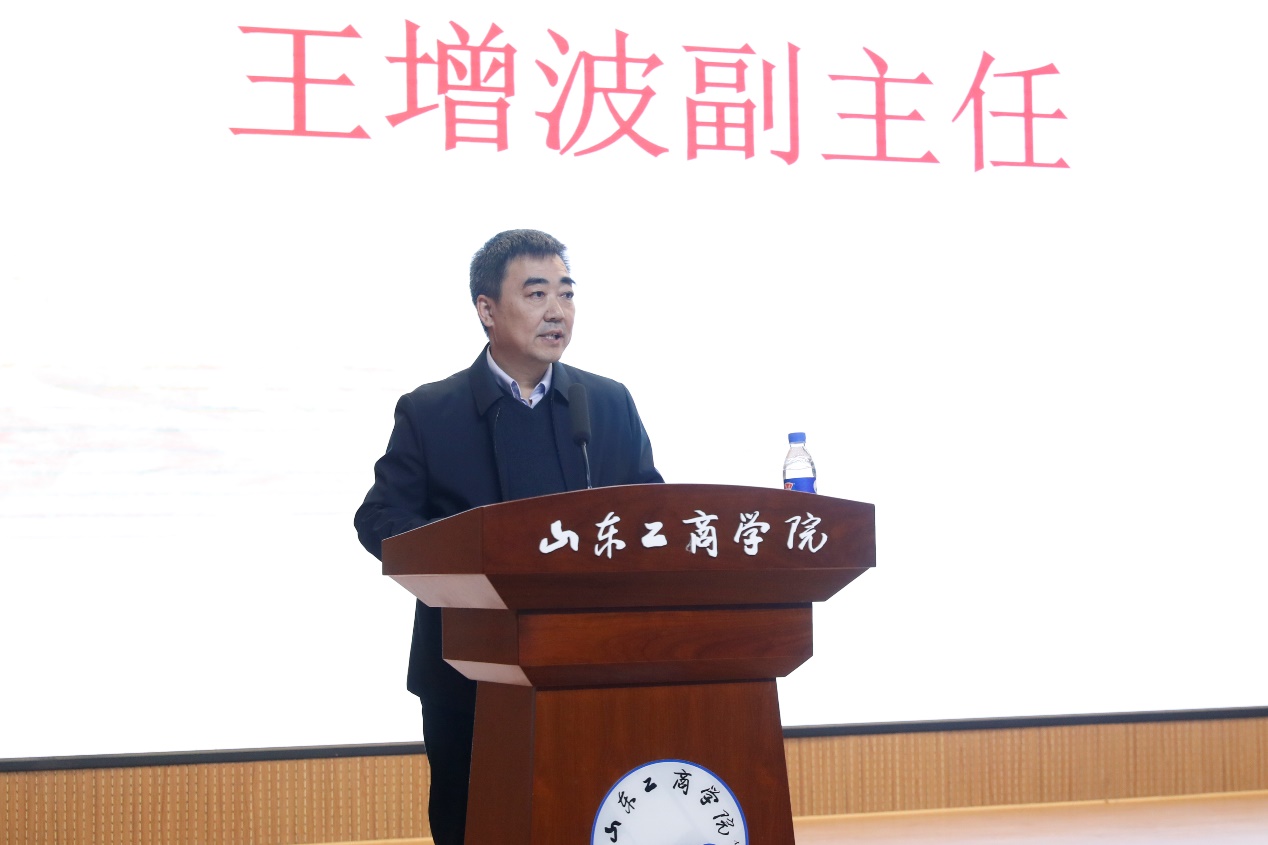 王增波副主任对我院三十年来所取得的显著成绩表达了热烈的祝贺,回顾了烟台仲裁委会员与我院产学研合作的历程与主要成绩,并表示未来将进一步深化交流与合作,充分挖掘我院的智慧资源和法治部门的实务资源,助推校地合作取得更加丰硕的成果。