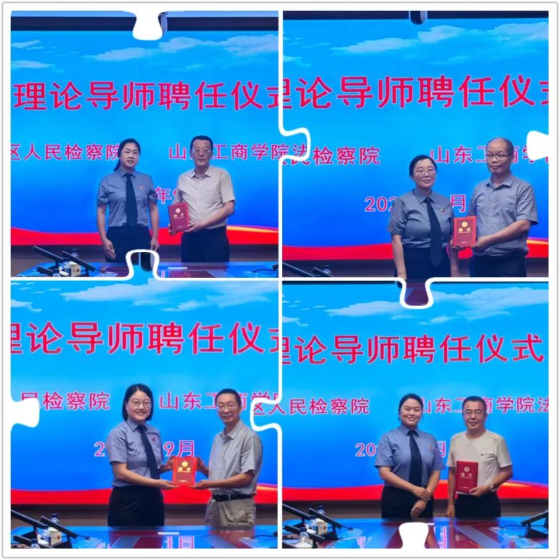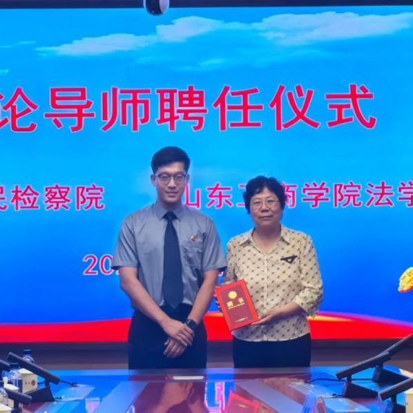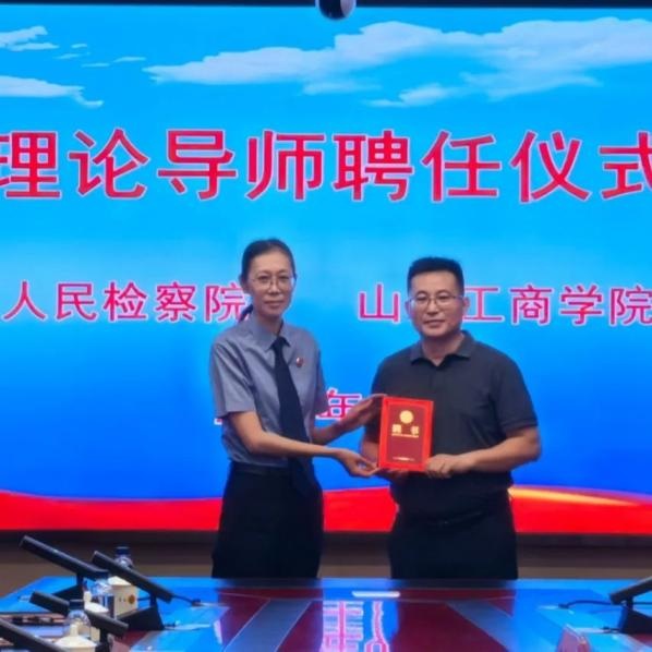 座谈会结束后,双方负责人共同签署了产学研战略合作协议,莱山区检察院党组书记、检察长于相富为我院受聘的六名青年业务骨干理论导师颁发了聘书。