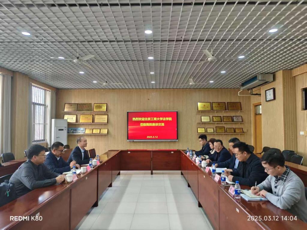 2025年3月12日下午,我院邀请北京工商大学太阳成城集团tyc234cc党委书记胥阳、院长陈敦及院长助理陈冠华一行三人,座谈交流人才培养方案的修订。我院党委书记杨卫华、院长武善学、副院长张建、涉外法教研室主任黄明明、信用风险管理与法律防控系副主任曹城及法学(律)系副主任姜春成参加座谈。