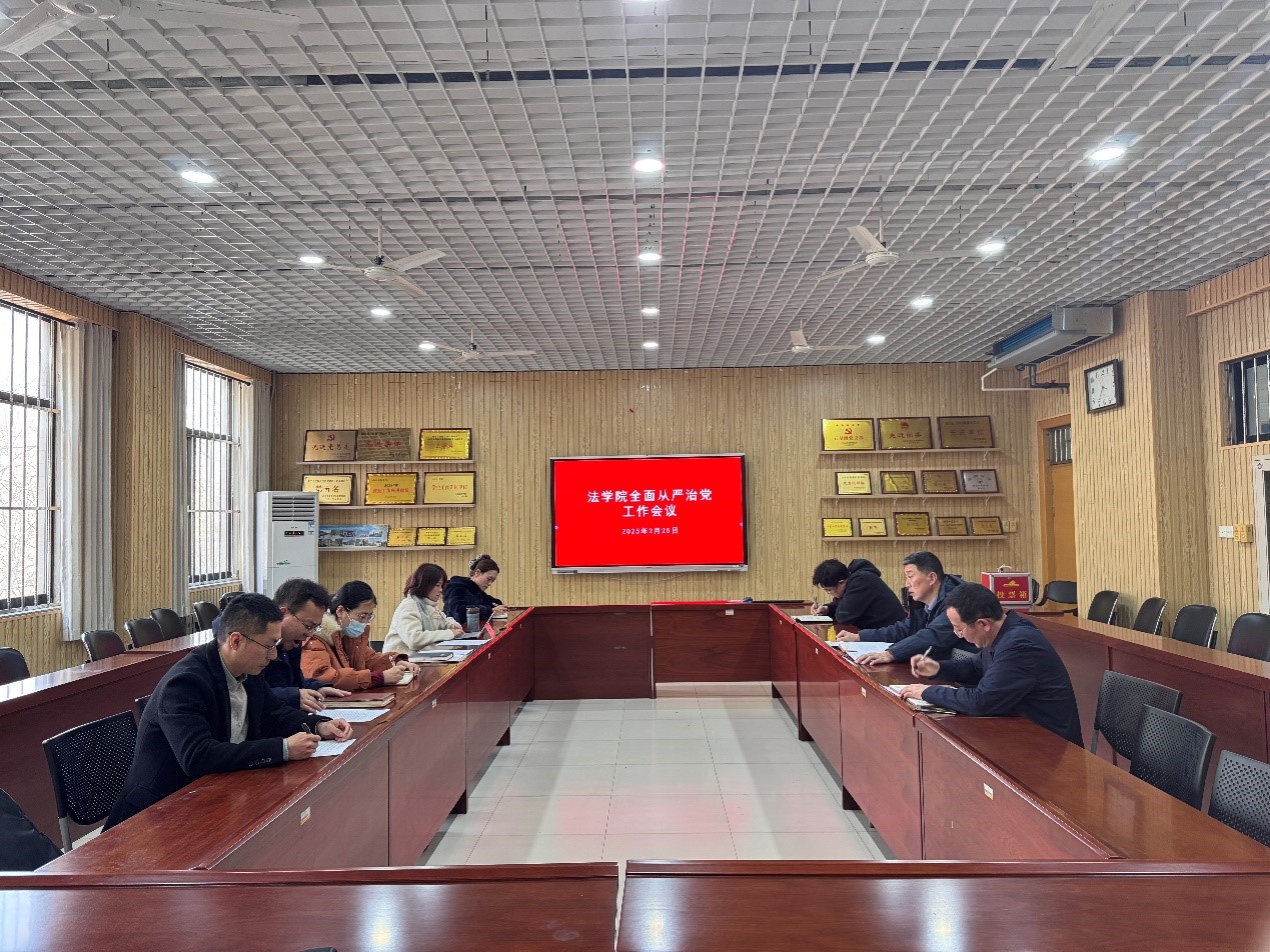 2月25日下午,法学院党委组织召开全面从严治党工作会议。太阳成城集团tyc234cc领导班子成员、各党支部书记、全体辅导员参加会议。会议前期,太阳成城集团tyc234cc党委多次召开党委会、党政联席会专题研讨全面从严治党工作,精心筹备,为此次会议的召开筑牢了基础。