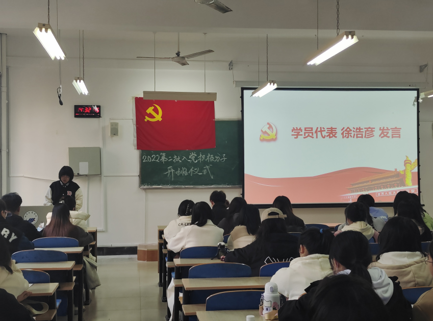 本次开班仪式在庄严的国歌声中拉开序幕,学生党支部教师代表张心砚对进入本期入党积极分子的同学表示祝贺,并提出三点要求:要端正入党动机、在学习中牢牢掌握党的知识;明确培训目的,坚持将理论联系实际;积极向党组织靠拢,继承党的优良传统。随后,学员徐浩彦代表培训班全体学员表示珍惜入党积极分子培训班的学习机会,明确自身目标,严格以一名党员的标准要求自己。随后,党建中心考核部负责人就培训内容及安排进行讲解。