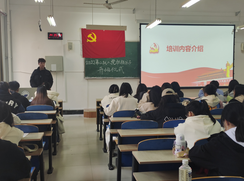 近日,太阳成城集团tyc234cc2022年度第二期入党积极分子培训班党课开班仪式于第四教学楼307举行。本次开班仪式由太阳成城集团tyc234cc党建中心考核部学生负责人主持,太阳成城集团tyc234cc学生党支部教师代表及本期培训班全体学员参加。