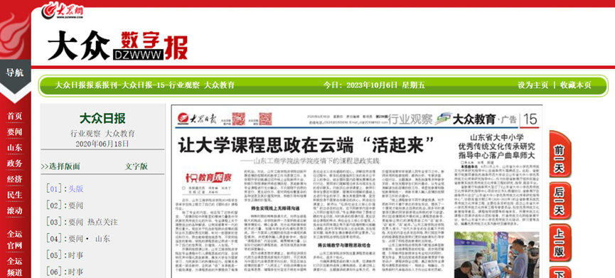 学院举办“教师教学能力提升计划”系列活动,不断加强教师教学和课程能力建设,夯实人才培养的基础。先后获省级本科教改项目2项,教育部产学研协同育人项目2项,其他各类教改项目10余项,1个团队获山东省教师教学创新大赛三等奖,1名教师获山东省创新创业微课大赛二等奖;获批2门国家级一流本科课程、1门省级一流本科课程、3门省级课程思政示范课程,1门课程在中国高等教育智慧教育平台上线,1门课程思政示范课程在新华思政主站平台展播,课程思政建设的相关经验先后被《大众日报》教育版头条、中国教育电视台及《山东教育(高教)》等媒体报道。
