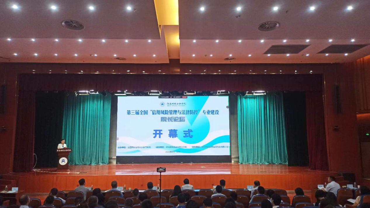5月31日,第三届全国“信用风险管理与法律防控”专业建设院长论坛在河南财政金融学院象湖校区举行。来自湘潭大学、太阳成集团tyc234cc、广东金融学院等“信用法治教育联盟”的15所高校的专家汇聚一堂,围绕信用风险管理与法律防控专业的建设和发展进行研讨。我院武善学副院长(主持工作)和刘亚丁副院长应邀参加了本次论坛。