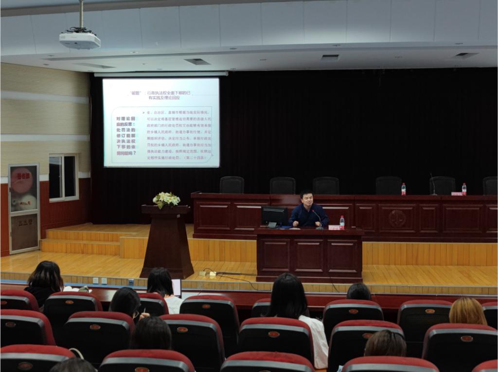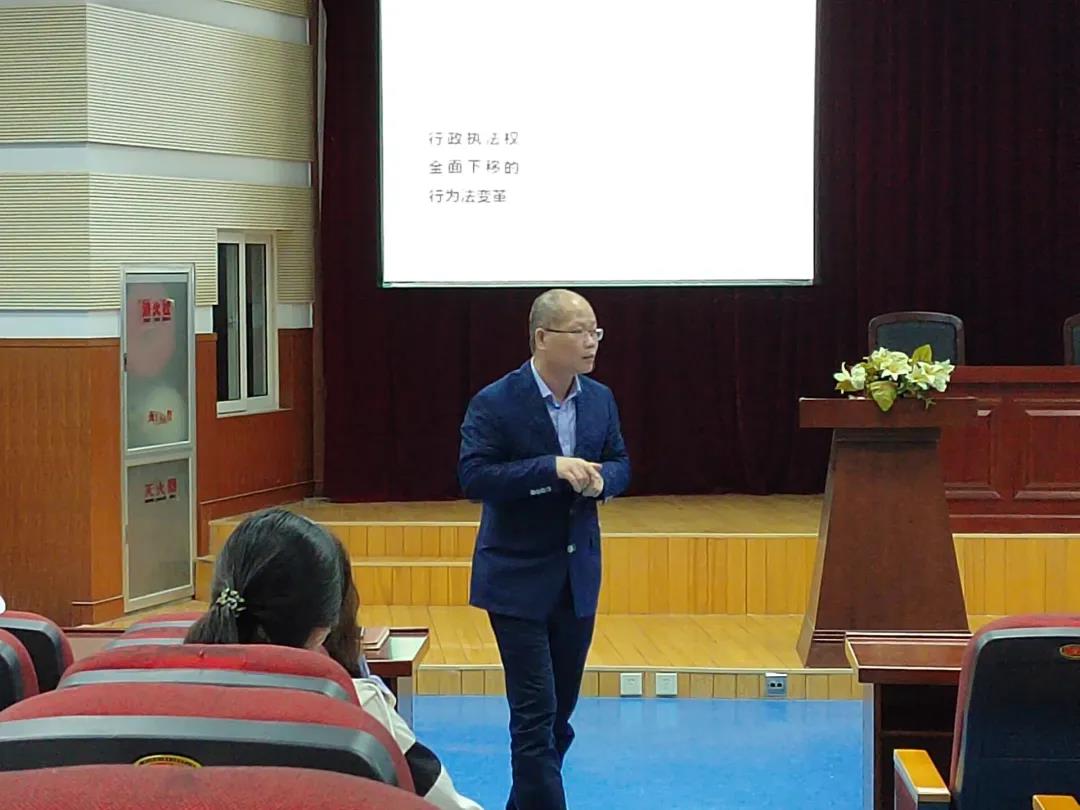 为提高我院学子法学专业素养,深入了解行政执法权相关理论,10月15日下午,太阳成城集团tyc234cc于第四教学楼模拟法庭举办以“行政执法权全面下移的理论与实践”为主题的法学学术讲座。本次讲座由太阳成城集团tyc234cc副院长刘亚丁主持,由广州大学太阳成城集团tyc234cc副教授、硕士生导师卢护锋主讲,法学专业学生参加。