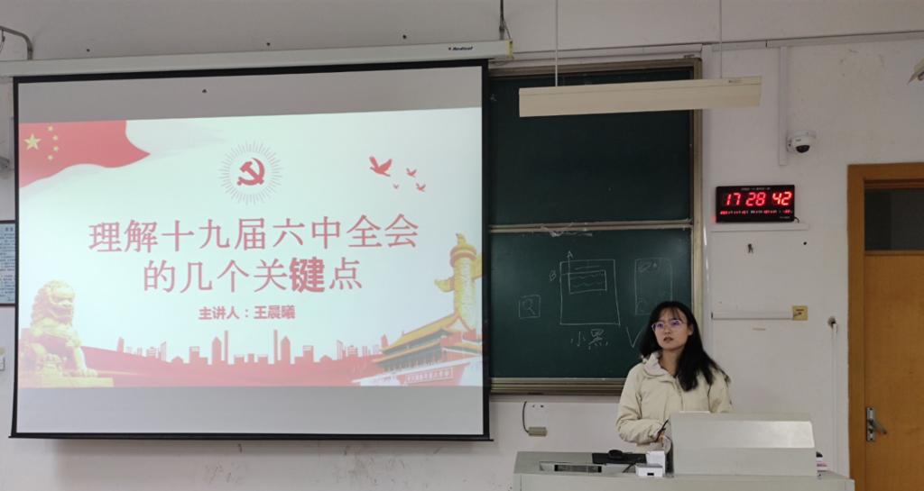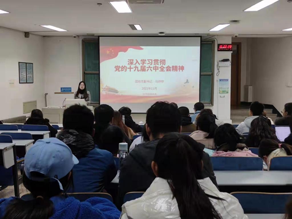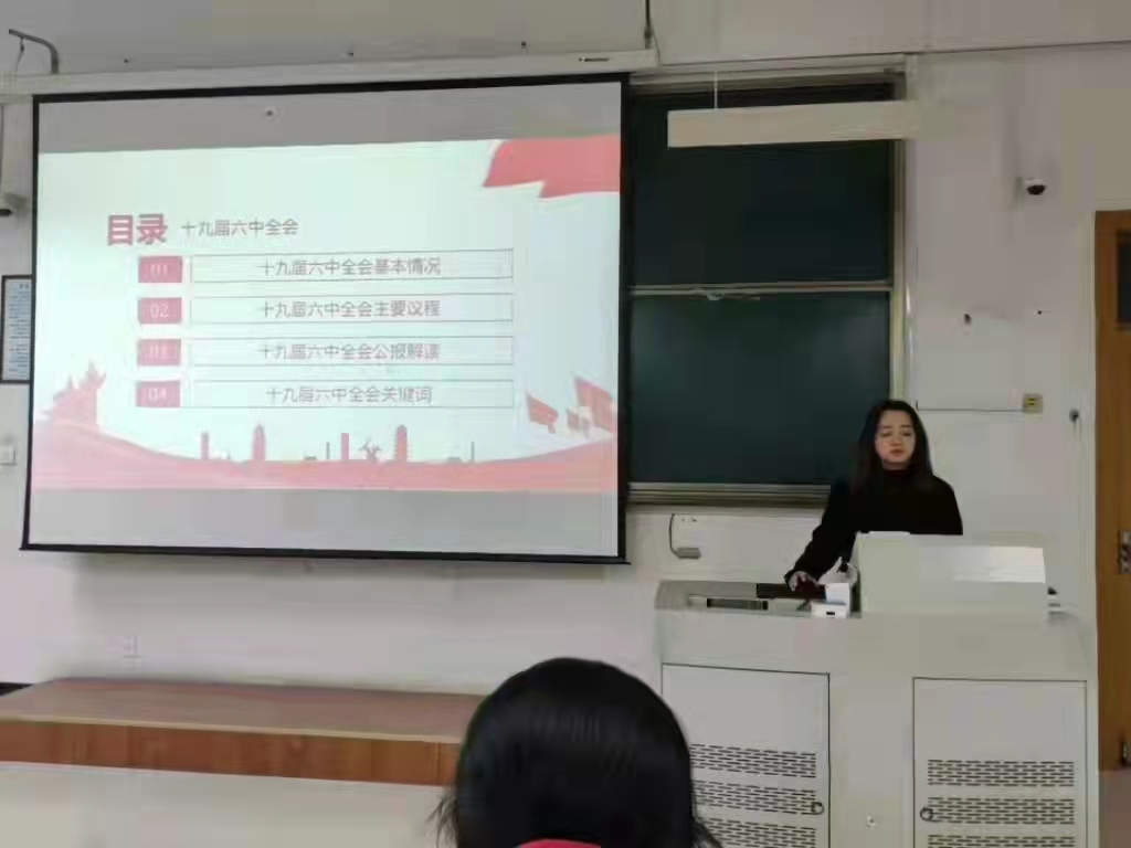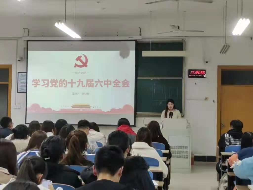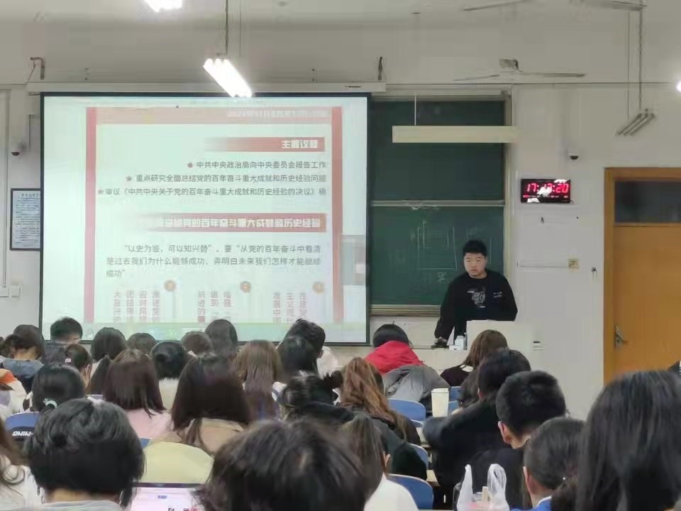 太阳成城集团tyc234cc学生会组织集中学习党的十九届六中全会精神活动,由太阳成城集团tyc234cc学生会主席团成员郑伟、杨有滋主讲,包括学生会成员等131名学生参加。