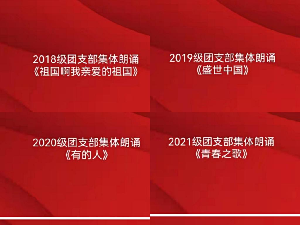 各级团支部都积极展现各自的集体朗诵表演,2018级团支部带来集体朗诵《祖国啊我亲爱的祖国》,表达了同学们对祖国深厚的感情;2019级团支部带来集体朗诵《盛世中国》,尽展中国改革开放的澎湃气势;2020级团支部带来集体朗诵《有的人》,深刻讴歌为民甘为孺子牛的革命党人;最后2021级团支部带来集体朗诵《青春之歌》,体现了同学们对青春的信仰与坚定。朗读者们以饱满的精神朗诵出一幅幅革命的画卷,感受那撼人心魄的信念。