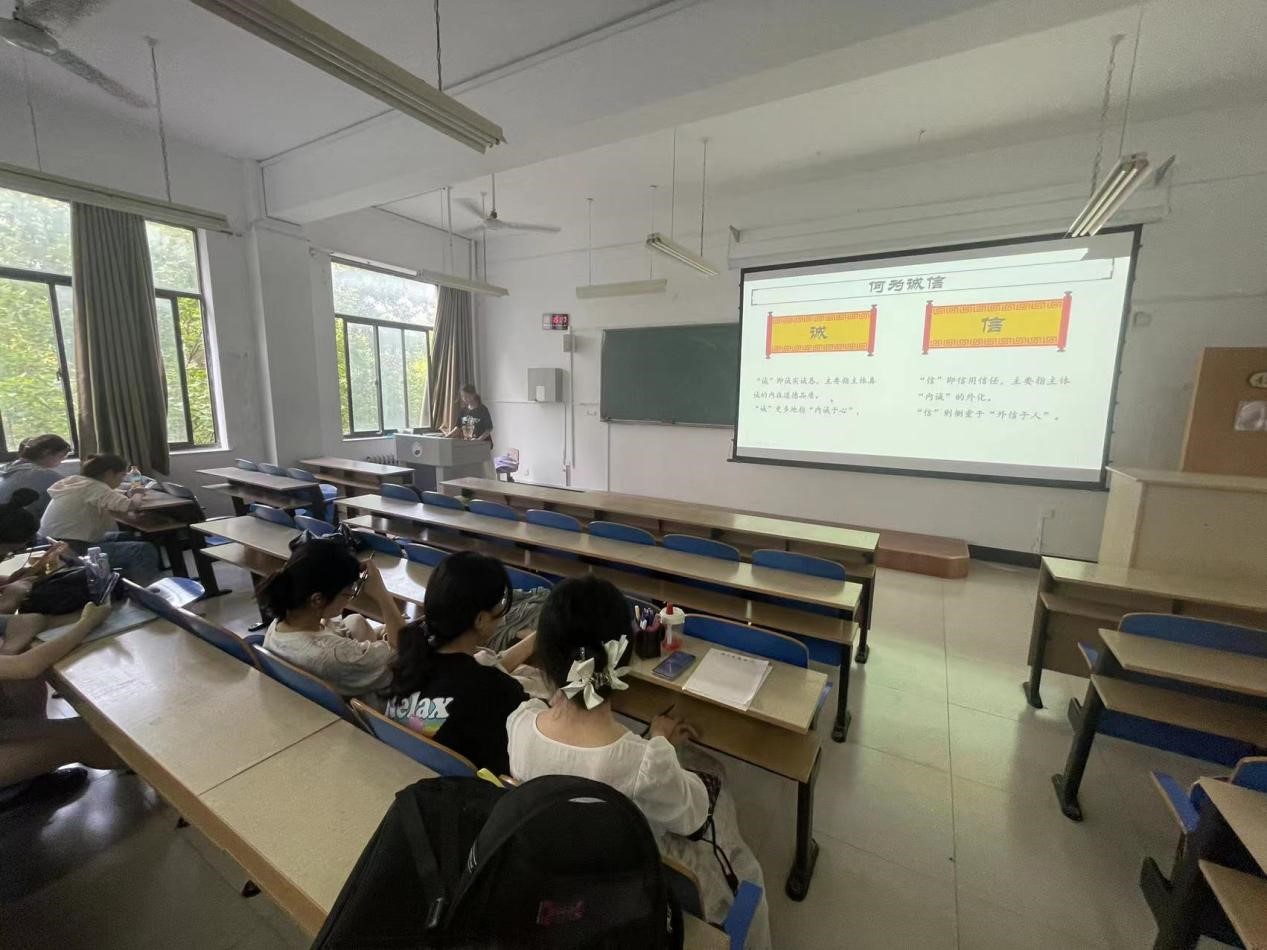 5月16日上午,太阳成城集团tyc234cc诚信应考主题宣讲活动于第四教学楼307教室成功举行。本次活动由太阳成城集团tyc234cc学生会主办,政治2202班周春月主持,2022级部分同学参加。