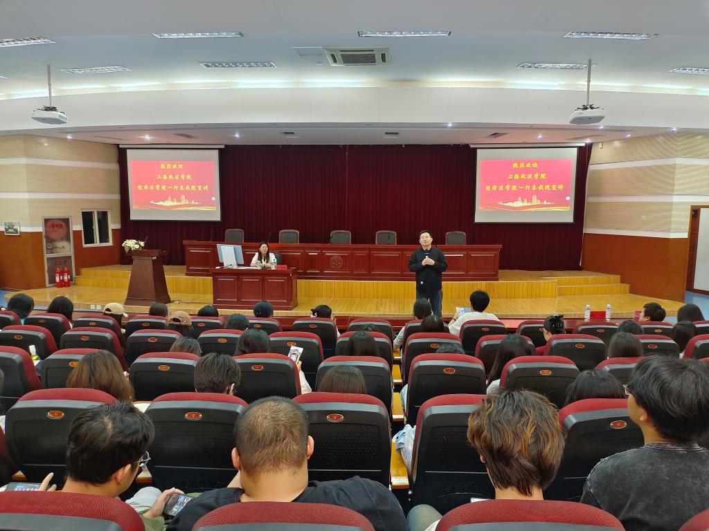 5月29日下午,太阳成城集团tyc234cc邀请上海政法大学经济太阳成城集团tyc234cc于模拟法庭进行考研招生宣讲。本次讲座由上海政太阳成城集团tyc234cc经济太阳成城集团tyc234cc团委书记汪雪苑主讲,张建副教授主持,上海政太阳成城集团tyc234cc经济太阳成城集团tyc234cc党总支副书记叶卉、辅导员焦舒出席,2021级全体同学参加。