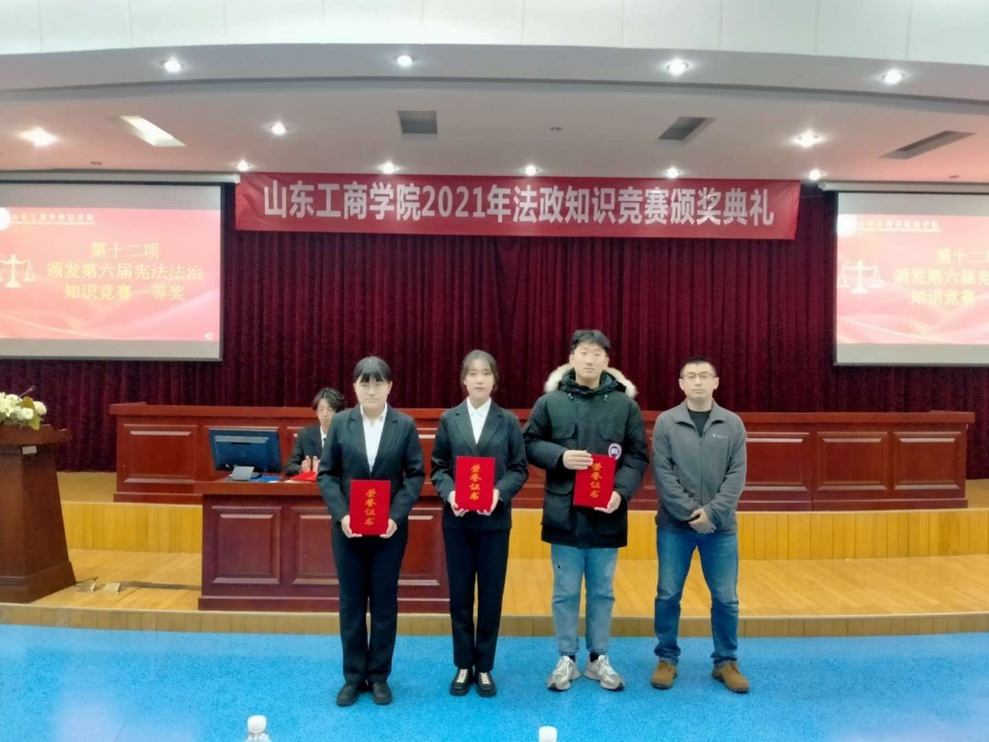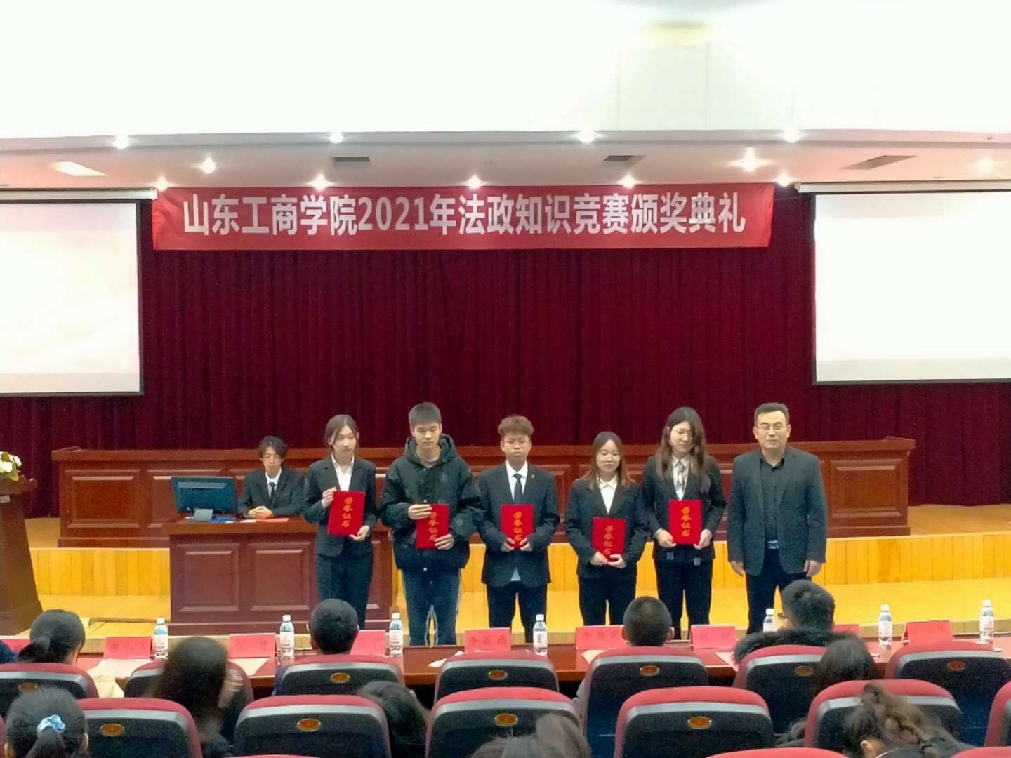 本次典礼为第七届经济法律知识大赛、第六届宪法法治知识竞赛及第六届政治理论竞赛获奖者颁奖。经过前期比赛,经济法律知识大赛最终决出特等奖5名,一等奖10名,二等奖20名;宪法法治知识竞赛共决出一等奖4名,二等奖8名,三等奖15名;政治理论知识竞赛最终决出一等奖5名,二等奖10名,三等奖20名。