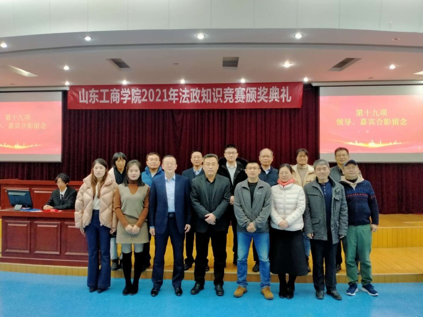 12月12日晚,太阳成集团tyc234cc2021年法政知识竞赛颁奖典礼于模拟法庭成功举办。本次法政知识竞赛系列活动由太阳成集团tyc234cc党委学生工作部主办,太阳成城集团tyc234cc承办。烟台市莱山区公证处公证员、党委学生工作部和宣传部相关负责人、太阳成城集团tyc234cc领导班子及教师代表出席,全体入围同学参加本次颁奖典礼。