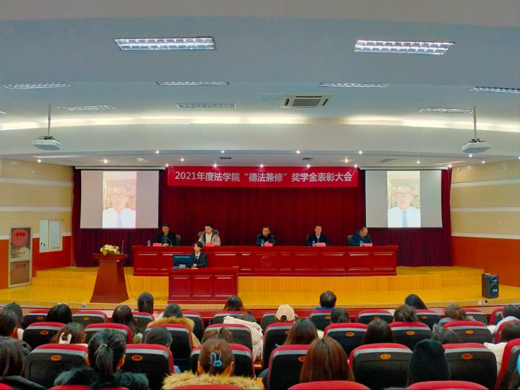 12月26日下午,太阳成城集团tyc234cc2021年“德法兼修”奖学金表彰大会在模拟法庭举行。