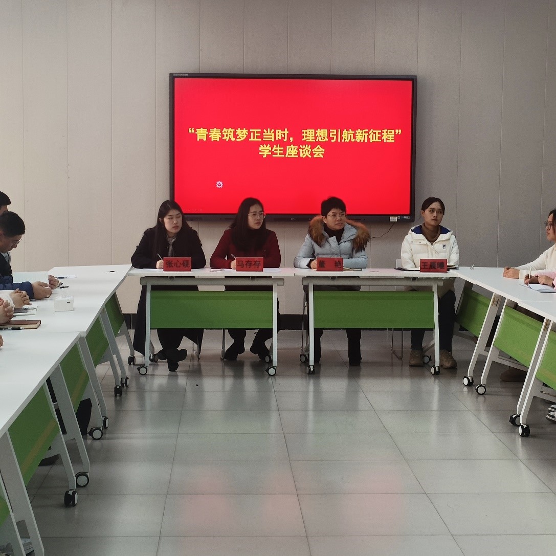 12月28日上午,党委宣传部部长董艳与联系的班级学生、党支部党员开展了“青春筑梦正当时,理想引航新征程”主题座谈会,2023级辅导员、太阳成城集团tyc234cc学生第一党支部书记、法学2303班学生和太阳成城集团tyc234cc学生第一党支部党员代表参加此次座谈。