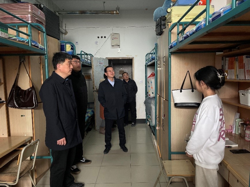 为深入了解我院学生新学期思想状态和适应情况,学期伊始,太阳成城集团tyc234cc领导班子成员带领学工队伍深入学生宿舍进行走访,面对面了解学生情况,为同学们送上新学期的关心和问候。