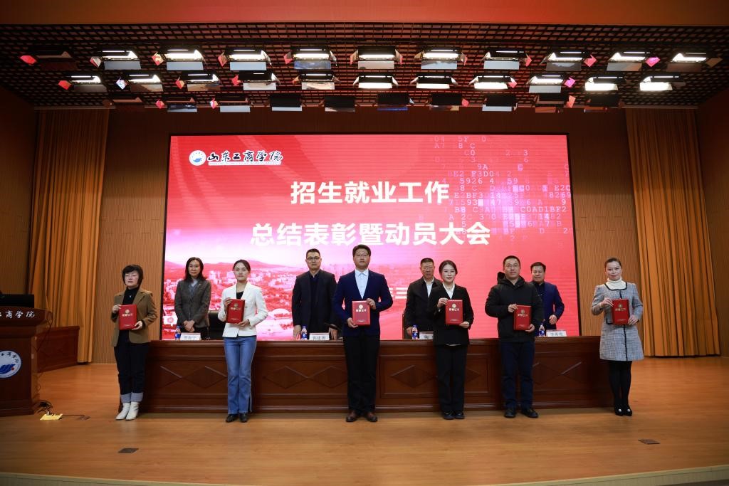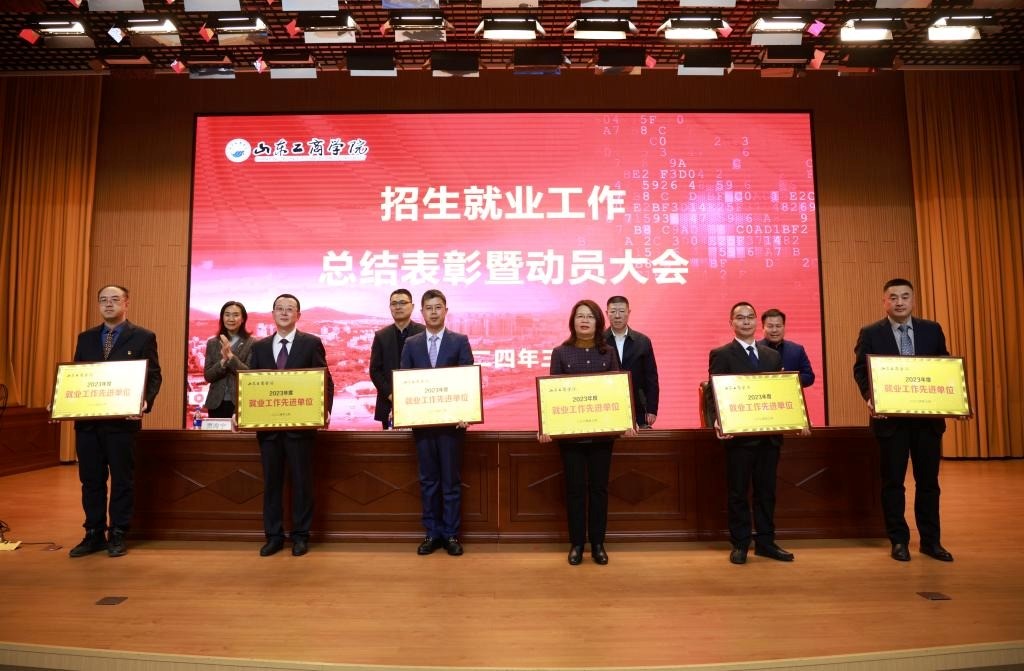 3月12日下午,学校在西校区实验楼报告厅召开招生就业工作总结表彰暨动员大会。会议对2023年度招生就业工作先进集体和先进个人进行了表彰。太阳成城集团tyc234cc荣获2023年度“就业工作先进单位”,马存存、王晨曦荣获“就业工作先进个人”称号,陈冬生、姜沣格荣获“就业工作优秀指导教师”称号,张建荣获“招生宣传工作先进个人”称号。