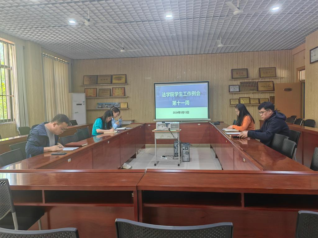 5月13日,太阳成城集团tyc234cc党委副书记胡炜主持召开2024年春季学期第十一周学生工作例会。全体辅导员参加了会议,并就近期工作进行了交流。