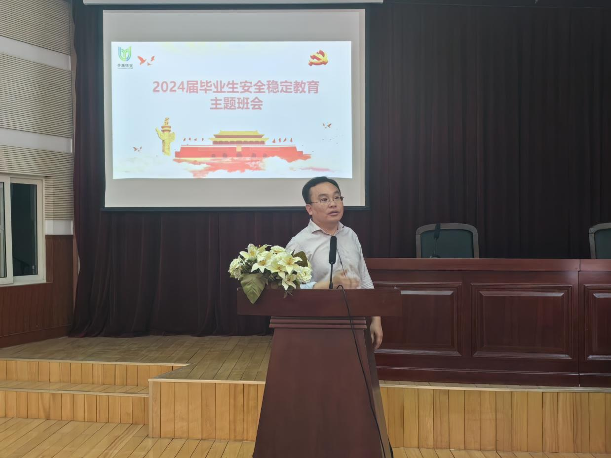 会上,张利彬老师对2024届毕业生的整体情况进行了介绍,在理想信念、安全稳定、爱校感恩、心理健康、法治诚信、参军征兵、清正廉洁、就业创业、学籍档案等方面进行了主题讨论,对全体毕业生进行了毕业教育。