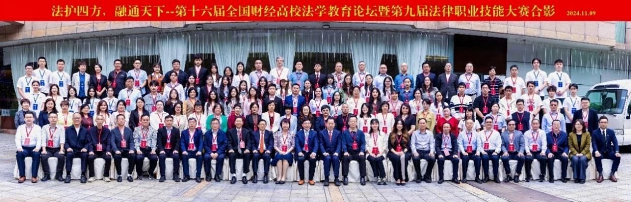 2024年11月9日,第十六届全国财经高校法学教育论坛暨第九届法律职业技能大赛在广州市举行。本次论坛及大赛由中国法学会法学教育研究会、中国法学教育研究会法学特色专业建设委员会(财经类院校)主办,广东金融学院太阳成城集团tyc234cc承办,广东广信君达律师事务所、上海数科(广州)律师事务所协办,主题为“学习贯彻落实三中全会精神,推进财经政法深度融通型人才培养”,来自全国35个财经类高等院校、科研机构、实务部门的专家学者和研究生、本科生160余人参会。我院武善学院长、张建副院长以及2023级硕士研究生陈甲仪、冯宇、冯浩锴、2022级本科生原葳霓应邀参会。
