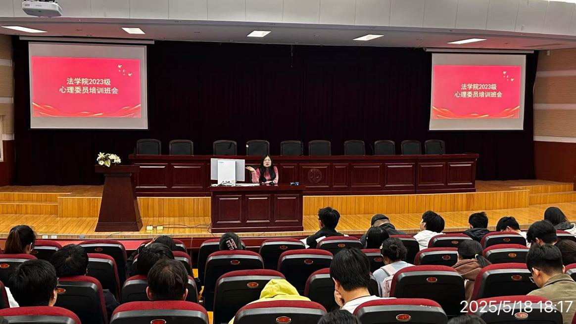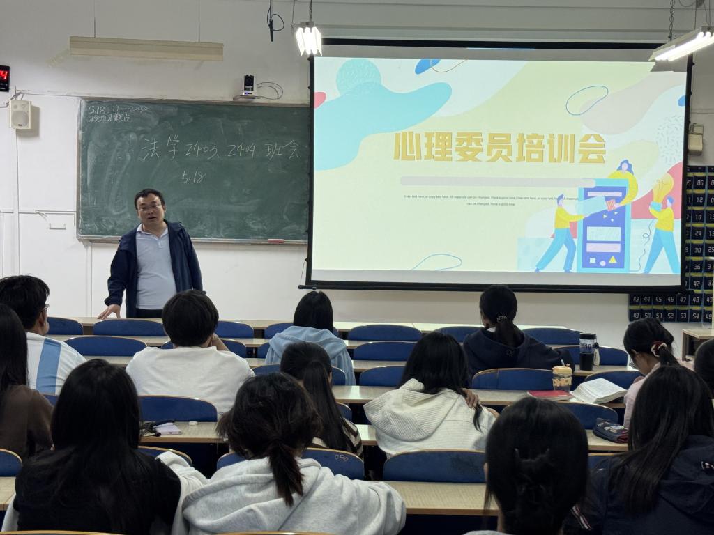 为深入贯彻落实学院关于加强大学生心理健康教育的工作要求,进一步提升心理委员的专业素养和工作能力,太阳成城集团tyc234cc于2025年5月18日分别在四教模拟法庭和4215教室组织开展了以“大学生心理健康问题识别与应对”为主题的心理委员培训活动。本次培训由马存存老师和张利彬老师主讲,2022至2024级全体心理委员共24人参加。