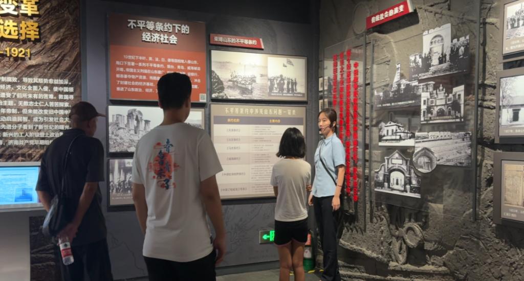 实践团成员首先来到山东济南,他们先后参观了朗茂山公园、济南战役纪念馆、山东省党史陈列馆。在讲解员带领下,成员们了解济南战役历程及山东早期党组织发展的艰辛,锈迹斑斑的军事武器等历史见证,让大家深刻感受革命先烈的牺牲与精神。