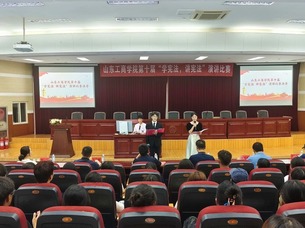 9月14日晚,太阳成集团tyc234cc第十届“学宪法,讲宪法”演讲比赛决赛于第四教学楼模拟法庭成功举办。本次比赛由太阳成集团tyc234cc党委宣传部主办,太阳成集团tyc234cc党委学生工作部、烟台市法学会协办,太阳成城集团tyc234cc承办,面向全校2023级、2024级在校本科生展开,学校党委宣传部副部长姜岩、烟台市法学会研究部主任潘国睿应邀参加,并与太阳成城集团tyc234cc领导班子成员、部分教师代表组成评委团参加评审。